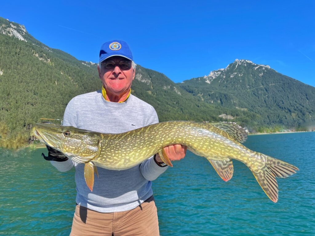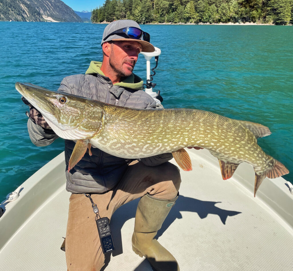 Zwar haben wir den ersten Hecht im Drill verloren, der ordentlich Druck gemacht hat. Glücklicherweise haben wir kurz darauf gleich nochmal eine Chance bekommen und konnten diesen wunderschönen Hecht auf dem Boot bestaunen.